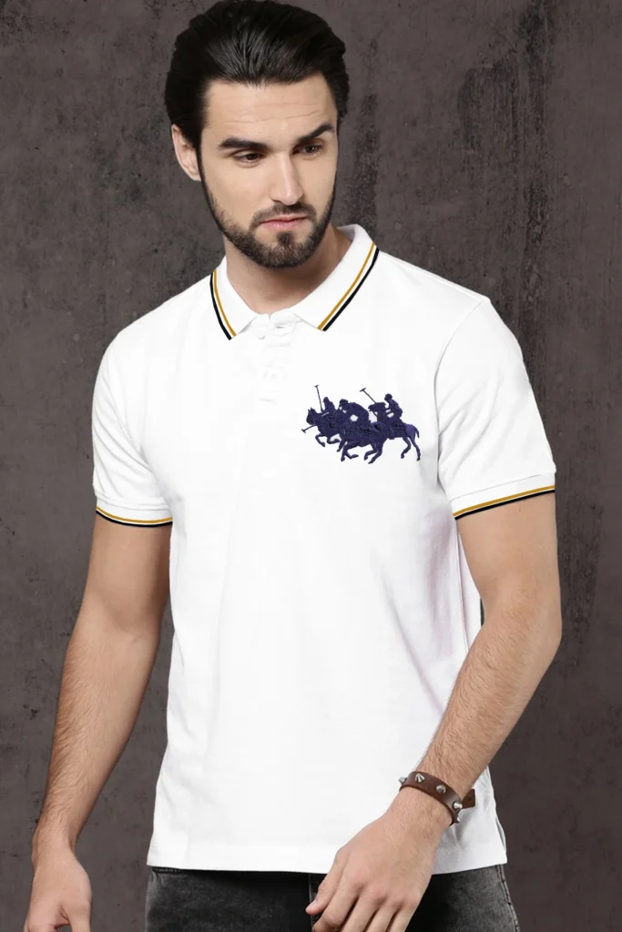 - This shirt boasts a Stretchable soft hand feel With Thread & Front Icon Embroidered Logo and half sleeves.