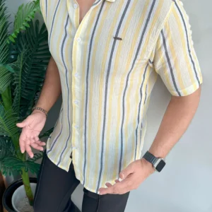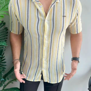 Patterned Lining Style Casual Shirt In Lemon